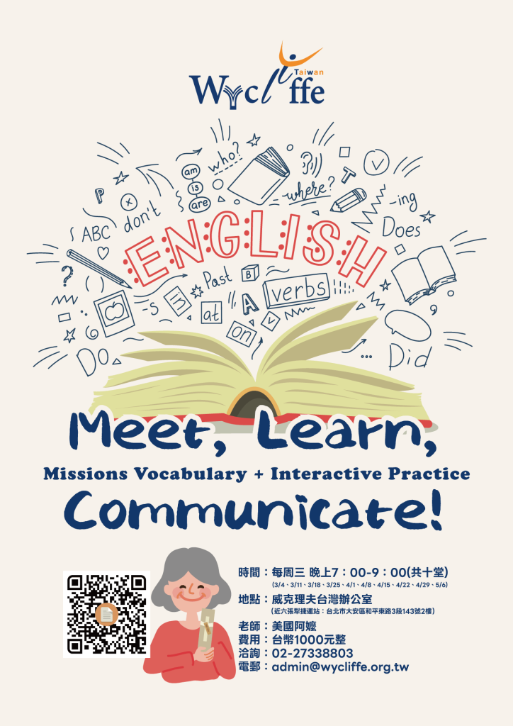 課程將於2026年3月4日至5月14日(共十節課)每週三晚上7點至9點在威克理夫台灣辦公室(六張犁)。